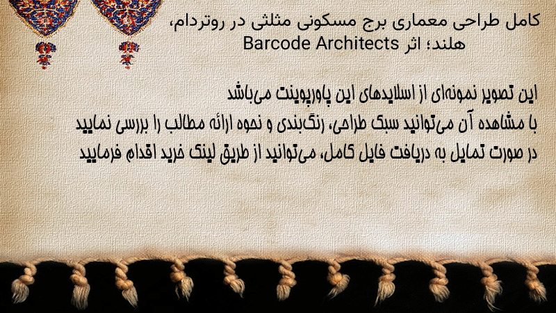 پاورپوینت کامل طراحی معماری برج مسکونی مثلثی در روتردام، هلند؛ اثر Barcode Architects