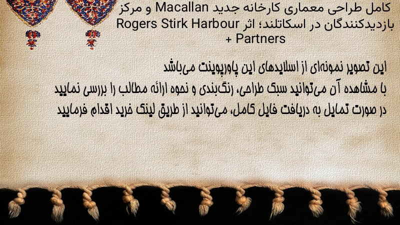 پاورپوینت کامل طراحی معماری کارخانه جدید Macallan و مرکز بازدیدکنندگان در اسکاتلند؛ اثر Rogers Stirk Harbour + Partners