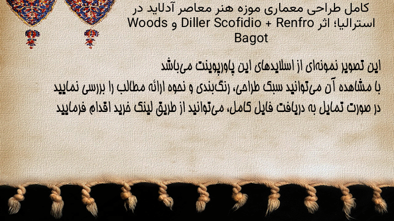 پاورپوینت کامل طراحی معماری موزه هنر معاصر آدلاید در استرالیا؛ اثر Diller Scofidio + Renfro و Woods Bagot
