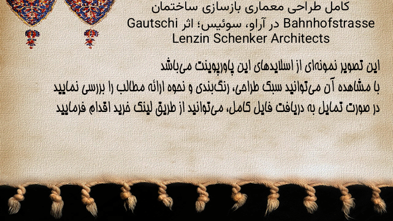 پاورپوینت کامل طراحی معماری بازسازی ساختمان Bahnhofstrasse در آراو، سوئیس؛ اثر Gautschi Lenzin Schenker Architects