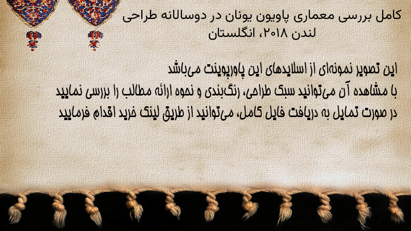 پاورپوینت کامل بررسی معماری پاویون یونان در دوسالانه طراحی لندن ۲۰۱۸، انگلستان