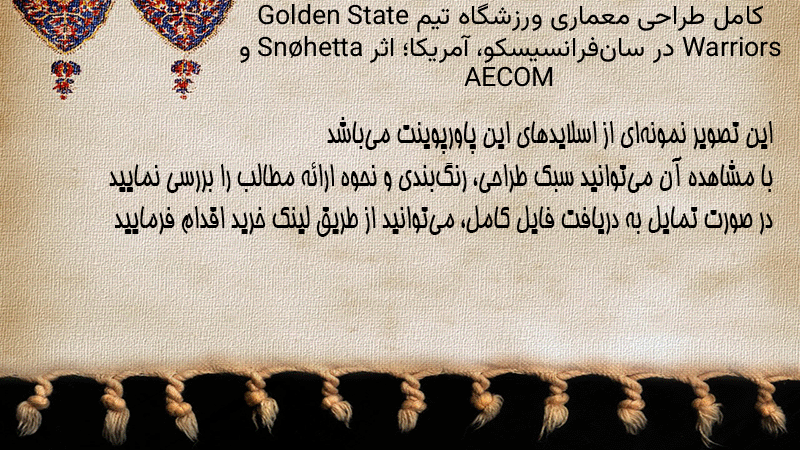 پاورپوینت کامل طراحی معماری ورزشگاه تیم Golden State Warriors در سانفرانسیسکو، آمریکا؛ اثر Snøhetta و AECOM