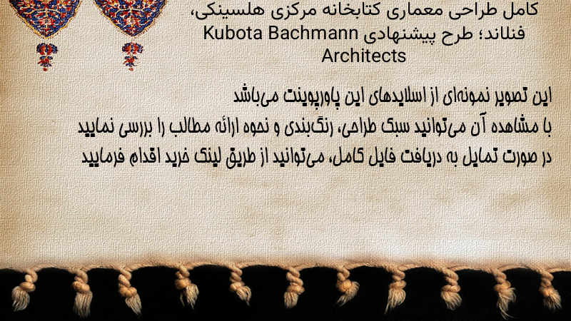 پاورپوینت کامل طراحی معماری کتابخانه مرکزی هلسینکی، فنلاند؛ طرح پیشنهادی Kubota Bachmann Architects