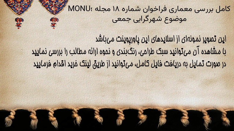 پاورپوینت کامل بررسی معماری فراخوان شماره ۱۸ مجله MONU؛ موضوع شهرگرایی جمعی