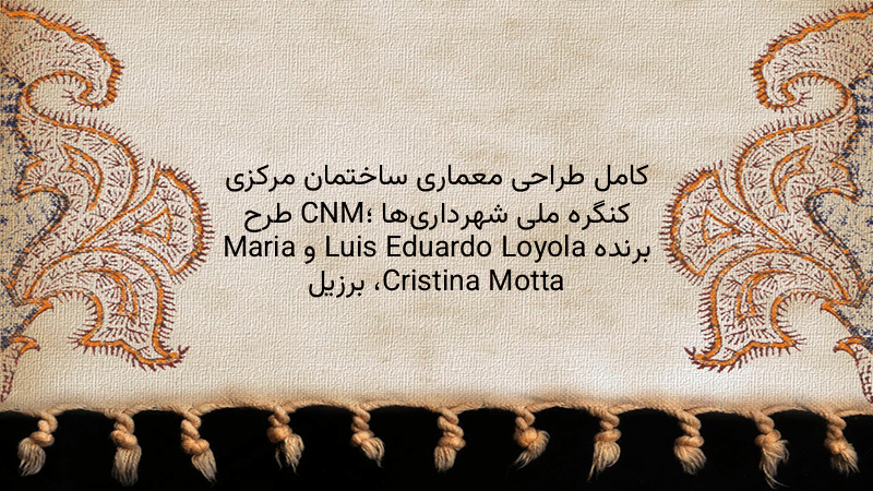 پاورپوینت کامل طراحی معماری ساختمان مرکزی کنگره ملی شهرداریها CNM؛ طرح برنده Luis Eduardo Loyola و Maria Cristina Motta، برزیل