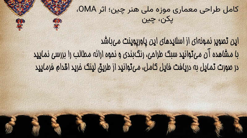 پاورپوینت کامل طراحی معماری موزه ملی هنر چین؛ اثر OMA، پکن، چین