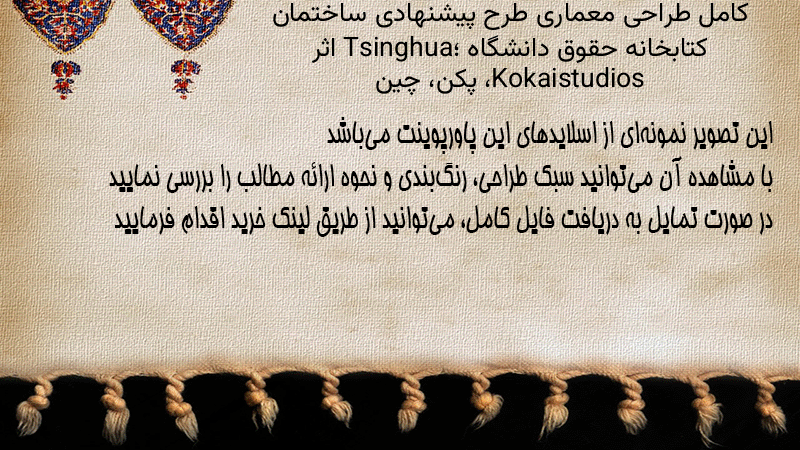 پاورپوینت کامل طراحی معماری طرح پیشنهادی ساختمان کتابخانه حقوق دانشگاه Tsinghua؛ اثر Kokaistudios، پکن، چین