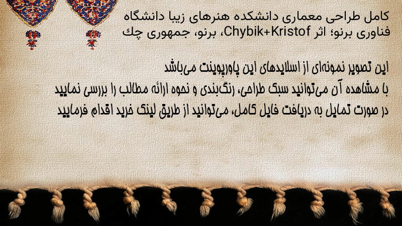پاورپوینت کامل طراحی معماری دانشکده هنرهای زیبا دانشگاه فناوری برنو؛ اثر Chybik+Kristof، برنو، جمهوری چک