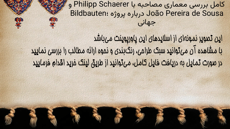 پاورپوینت کامل بررسی معماری مصاحبه با Philipp Schaerer و João Pereira de Sousa درباره پروژه Bildbauten؛ جهانی