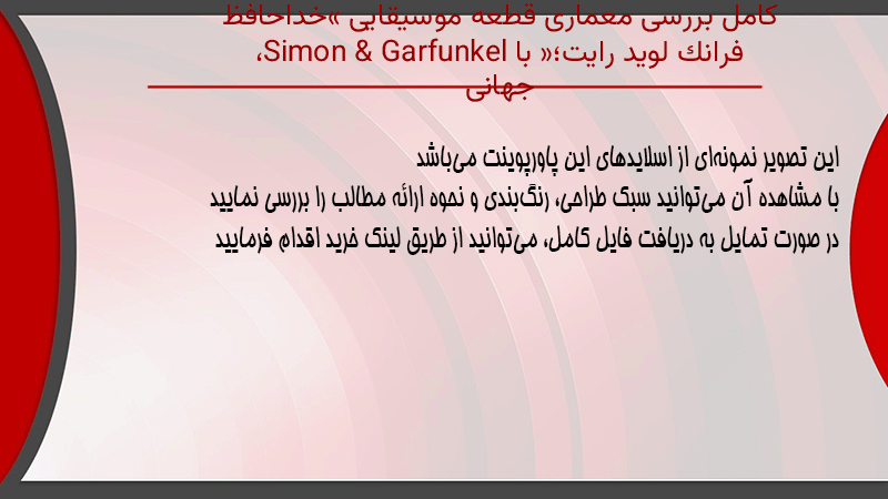 پاورپوینت کامل بررسی معماری قطعه موسیقایی «خداحافظ فرانک لوید رایت»؛ با Simon & Garfunkel، جهانی