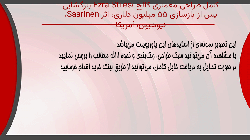 پاورپوینت کامل طراحی معماری کالج Ezra Stiles؛ بازگشایی پس از بازسازی ۵۵ میلیون دلاری، اثر Saarinen، نیوهیون، آمریکا