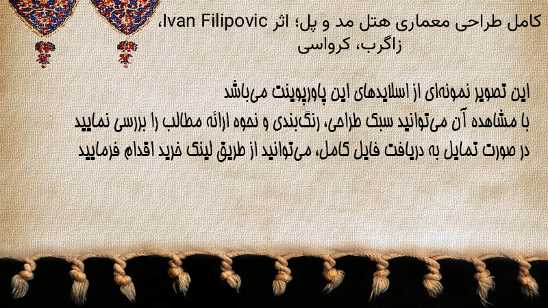 پاورپوینت کامل طراحی معماری هتل مد و پل؛ اثر Ivan Filipovic، زاگرب، کرواسی