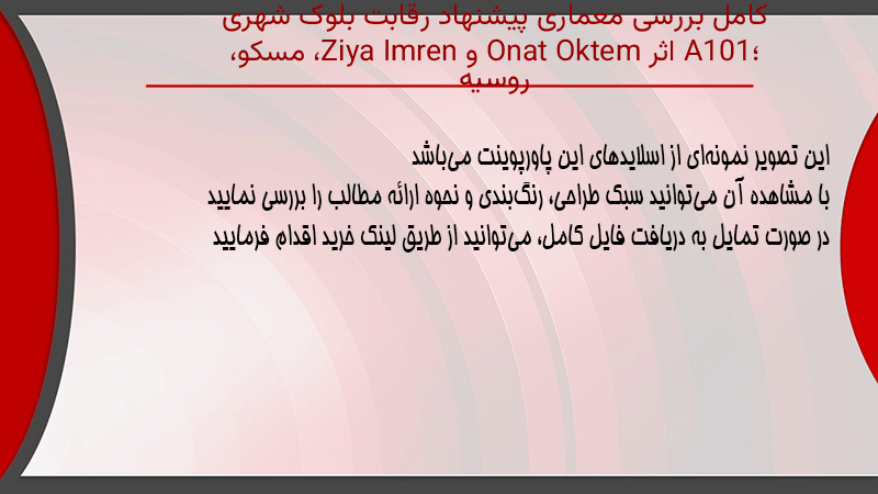 پاورپوینت کامل بررسی معماری پیشنهاد رقابت بلوک شهری A101؛ اثر Onat Oktem و Ziya Imren، مسکو، روسیه
