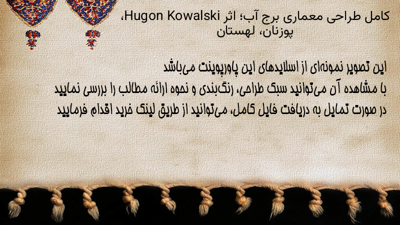پاورپوینت کامل طراحی معماری برج آب؛ اثر Hugon Kowalski، پوزنان، لهستان