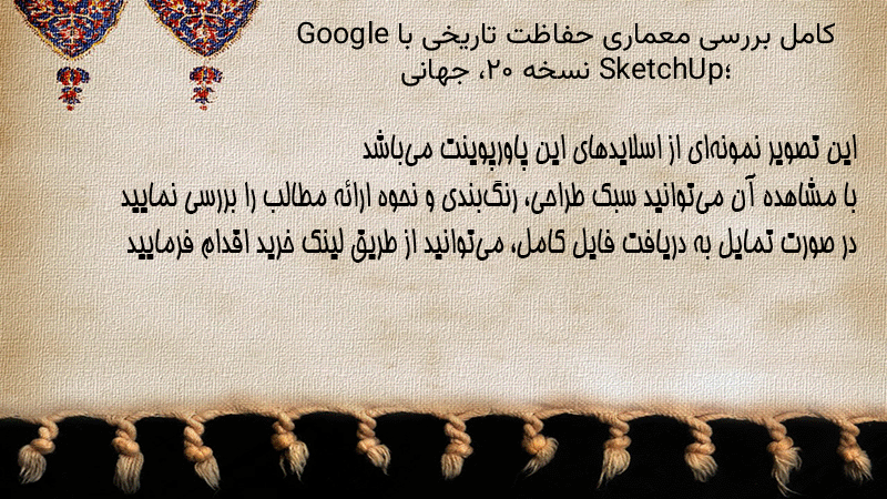پاورپوینت کامل بررسی معماری حفاظت تاریخی با Google SketchUp؛ نسخه ۲۰، جهانی