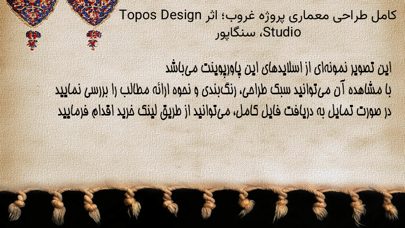 پاورپوینت کامل طراحی معماری پروژه غروب؛ اثر Topos Design Studio، سنگاپور