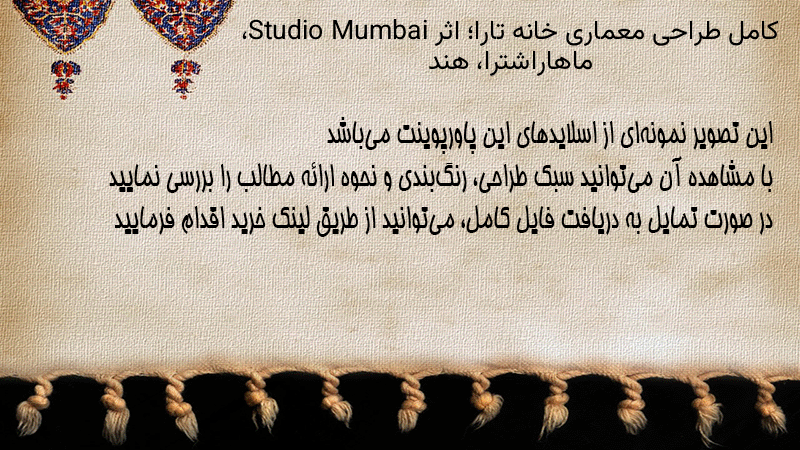 پاورپوینت کامل طراحی معماری خانه تارا؛ اثر Studio Mumbai، ماهاراشترا، هند