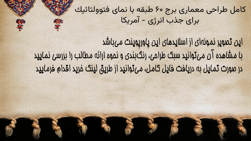 پاورپوینت کامل طراحی معماری برج ۶۰ طبقه با نمای فتوولتائیک برای جذب انرژی – آمریکا
