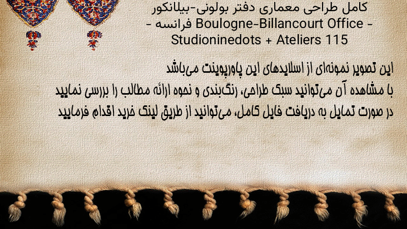پاورپوینت کامل طراحی معماری دفتر بولونی-بیلانکور Boulogne-Billancourt Office – فرانسه – Studioninedots + Ateliers 115