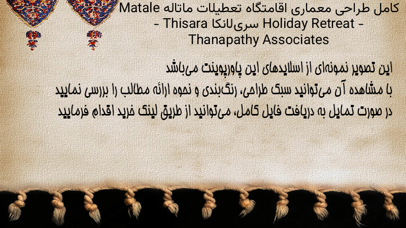 پاورپوینت کامل طراحی معماری اقامتگاه تعطیلات ماتاله Matale Holiday Retreat – سریلانکا – Thisara Thanapathy Associates