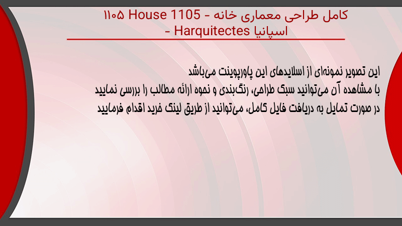 پاورپوینت کامل طراحی معماری خانه ۱۱۰۵ House 1105 – اسپانیا – Harquitectes