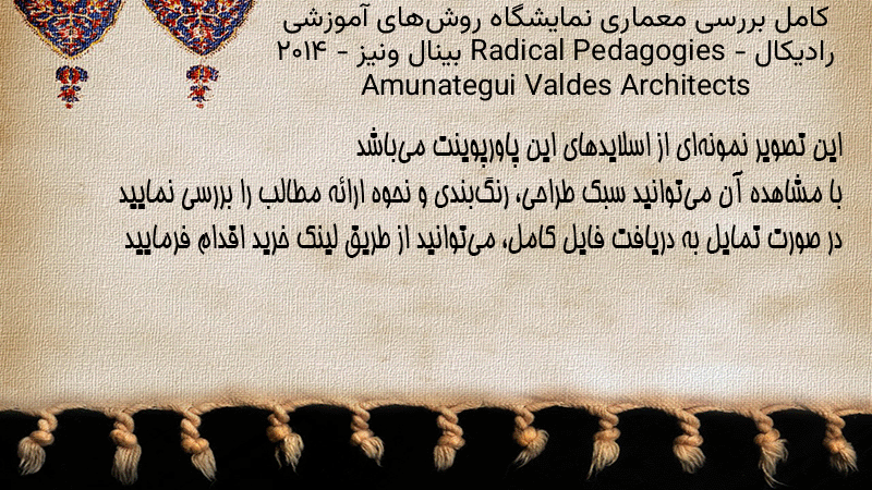 پاورپوینت کامل بررسی معماری نمایشگاه روشهای آموزشی رادیکال Radical Pedagogies – بینال ونیز ۲۰۱۴ – Amunategui Valdes Architects