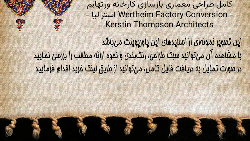 پاورپوینت کامل طراحی معماری بازسازی کارخانه ورتهایم Wertheim Factory Conversion – استرالیا – Kerstin Thompson Architects