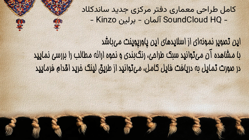 پاورپوینت کامل طراحی معماری دفتر مرکزی جدید ساندکلاد SoundCloud HQ – آلمان – برلین – Kinzo