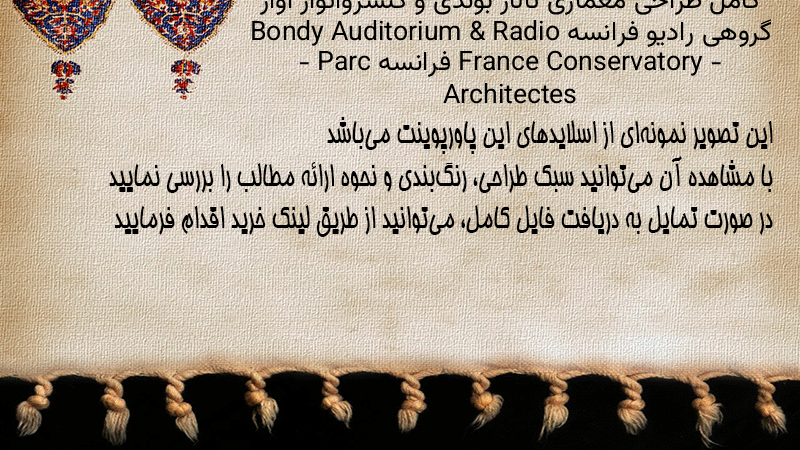 پاورپوینت کامل طراحی معماری تالار بوندی و کنسرواتوار آواز گروهی رادیو فرانسه Bondy Auditorium & Radio France Conservatory – فرانسه – Parc Architectes