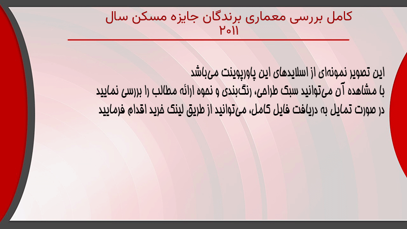 پاورپوینت کامل بررسی معماری برندگان جایزه مسکن سال ۲۰۱۱