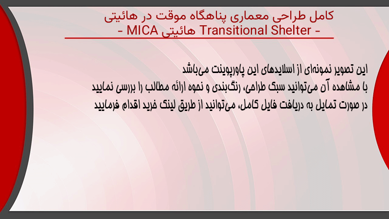 پاورپوینت کامل طراحی معماری پناهگاه موقت در هائیتی Transitional Shelter – هائیتی – MICA