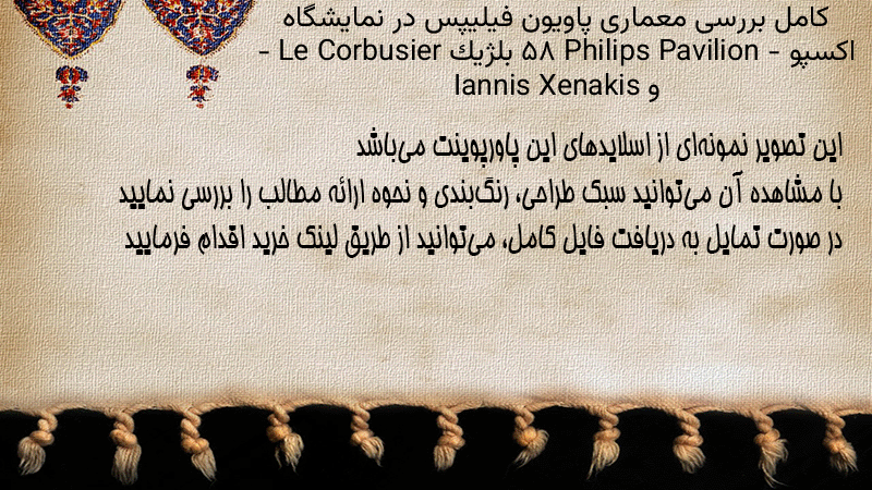 پاورپوینت کامل بررسی معماری پاویون فیلیپس در نمایشگاه اکسپو ۵۸ Philips Pavilion – بلژیک – Le Corbusier و Iannis Xenakis