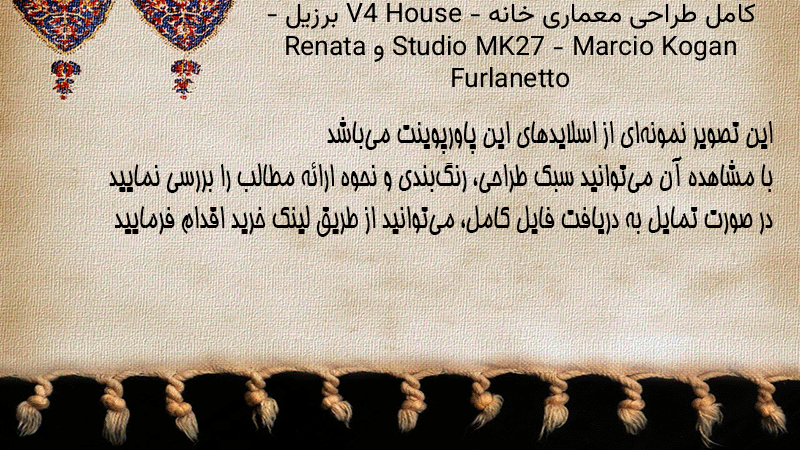 پاورپوینت کامل طراحی معماری خانه V4 House – برزیل – Studio MK27 – Marcio Kogan و Renata Furlanetto