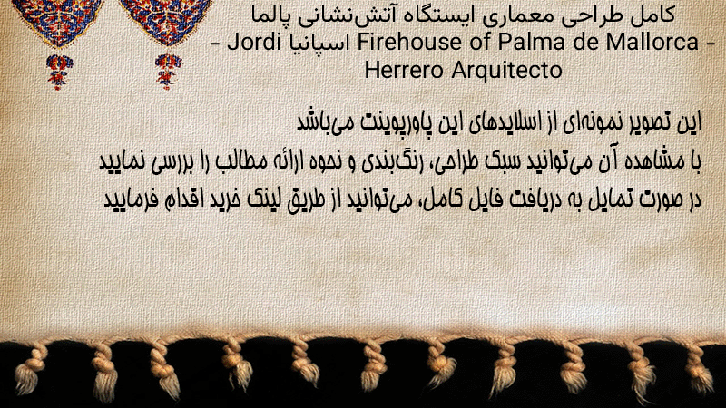پاورپوینت کامل طراحی معماری ایستگاه آتشنشانی پالما Firehouse of Palma de Mallorca – اسپانیا – Jordi Herrero Arquitecto