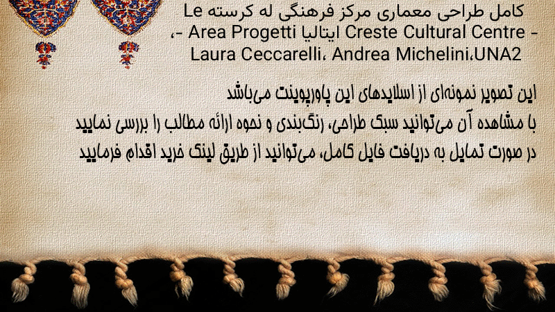 پاورپوینت کامل طراحی معماری مرکز فرهنگی له کرسته Le Creste Cultural Centre – ایتالیا – Area Progetti، UNA2، Andrea Michelini، Laura Ceccarelli