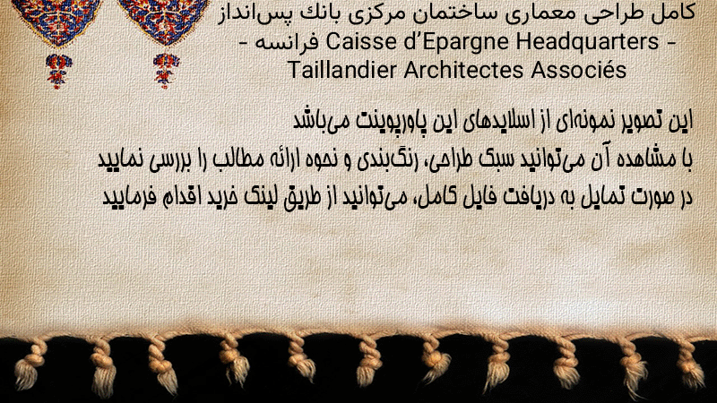 پاورپوینت کامل طراحی معماری ساختمان مرکزی بانک پسانداز Caisse d’Epargne Headquarters – فرانسه – Taillandier Architectes Associés
