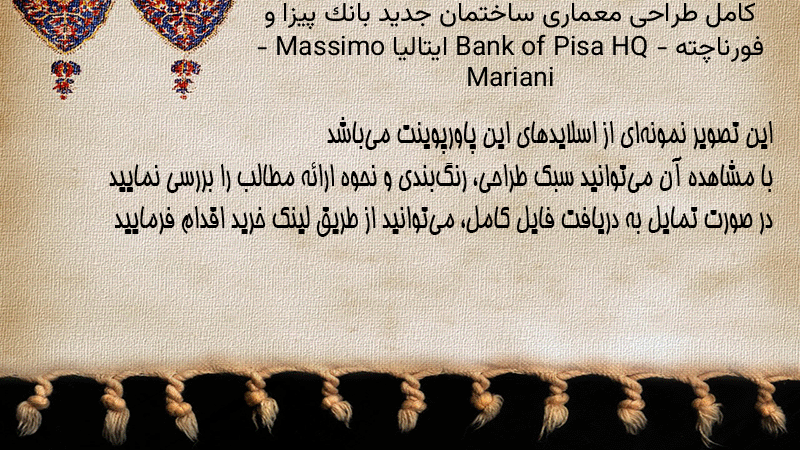 پاورپوینت کامل طراحی معماری ساختمان جدید بانک پیزا و فورناچته Bank of Pisa HQ – ایتالیا – Massimo Mariani