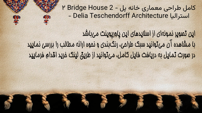 پاورپوینت کامل طراحی معماری خانه پل ۲ Bridge House 2 – استرالیا – Delia Teschendorff Architecture