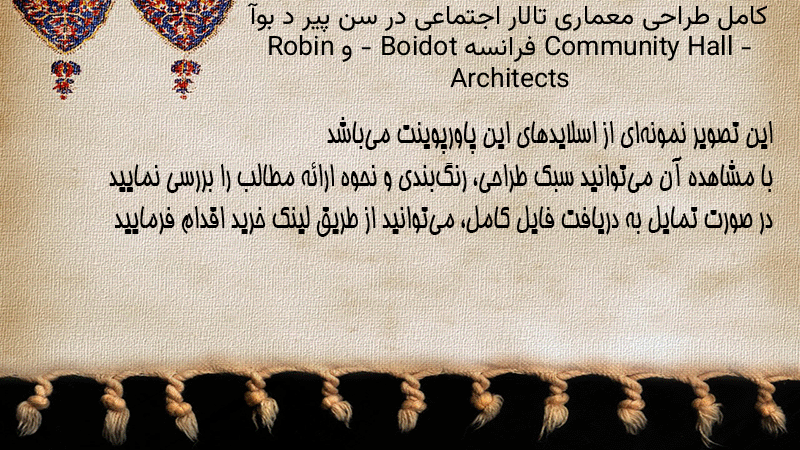 پاورپوینت کامل طراحی معماری تالار اجتماعی در سن پیر د بوآ Community Hall – فرانسه – Boidot و Robin Architects