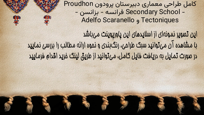 پاورپوینت کامل طراحی معماری دبیرستان پرودون Proudhon Secondary School – فرانسه – بزانسن – Tectoniques و Adelfo Scaranello