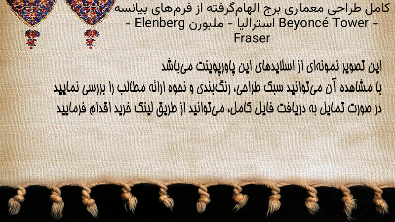 پاورپوینت کامل طراحی معماری برج الهامگرفته از فرمهای بیانسه Beyoncé Tower – استرالیا – ملبورن – Elenberg Fraser