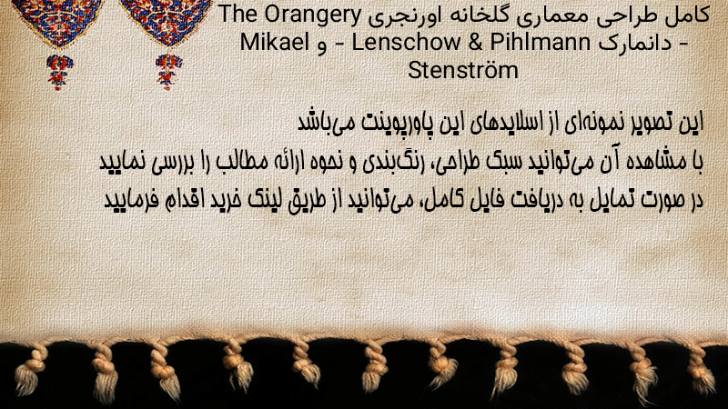 پاورپوینت کامل طراحی معماری گلخانه اورنجری The Orangery – دانمارک – Lenschow & Pihlmann و Mikael Stenström