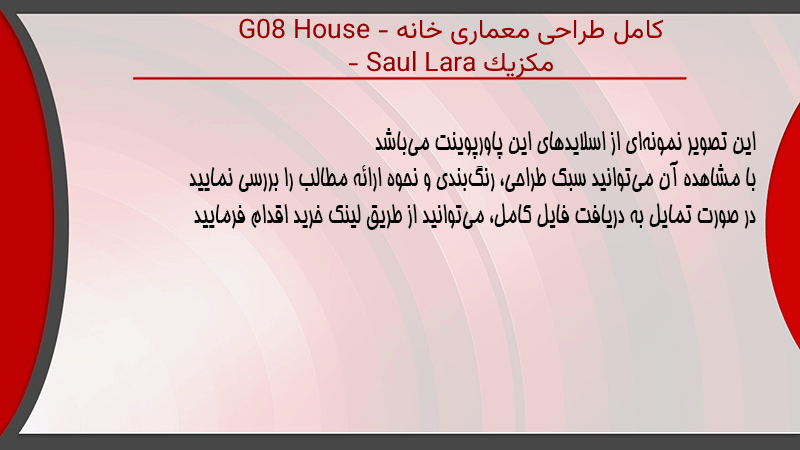 پاورپوینت کامل طراحی معماری خانه G08 House – مکزیک – Saul Lara