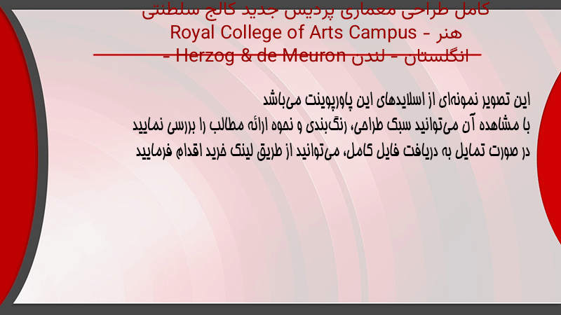 پاورپوینت کامل طراحی معماری پردیس جدید کالج سلطنتی هنر Royal College of Arts Campus – انگلستان – لندن – Herzog & de Meuron