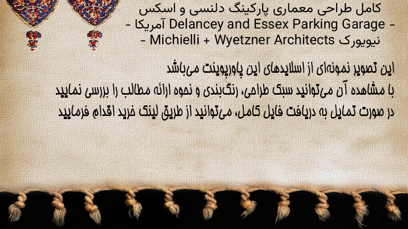 پاورپوینت کامل طراحی معماری پارکینگ دلنسی و اسکس Delancey and Essex Parking Garage – آمریکا – نیویورک – Michielli + Wyetzner Architects