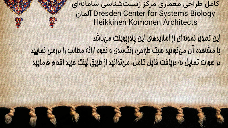پاورپوینت کامل طراحی معماری مرکز زیستشناسی سامانهای Dresden Center for Systems Biology – آلمان – Heikkinen Komonen Architects
