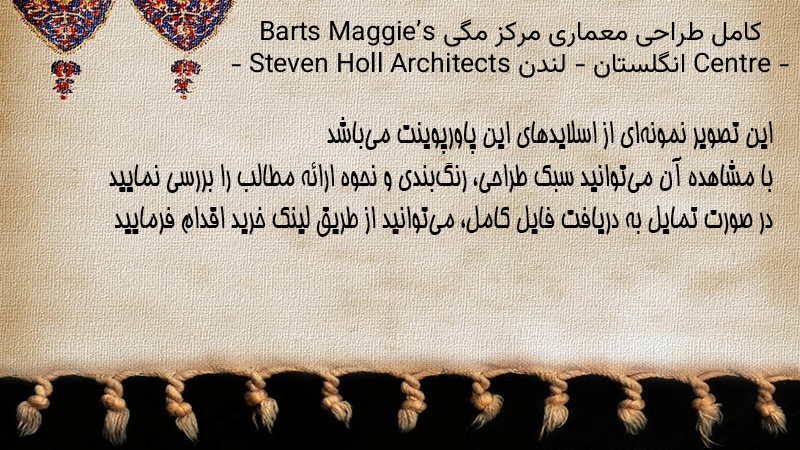 پاورپوینت کامل طراحی معماری مرکز مگی Barts Maggie’s Centre – انگلستان – لندن – Steven Holl Architects
