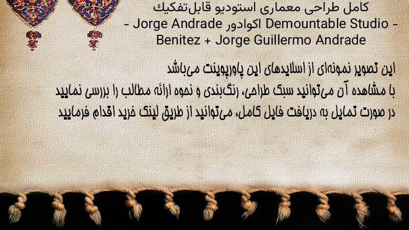 پاورپوینت کامل طراحی معماری استودیو قابلتفکیک Demountable Studio – اکوادور – Jorge Andrade Benitez + Jorge Guillermo Andrade