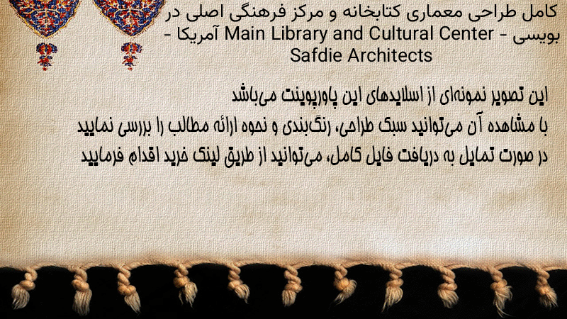 پاورپوینت کامل طراحی معماری کتابخانه و مرکز فرهنگی اصلی در بویسی Main Library and Cultural Center – آمریکا – Safdie Architects