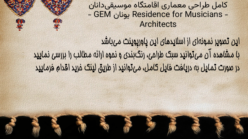 پاورپوینت کامل طراحی معماری اقامتگاه موسیقیدانان Residence for Musicians – یونان – GEM Architects